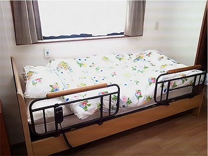 安全性を考え電動リクライニングの介護ベッドを導入しております。